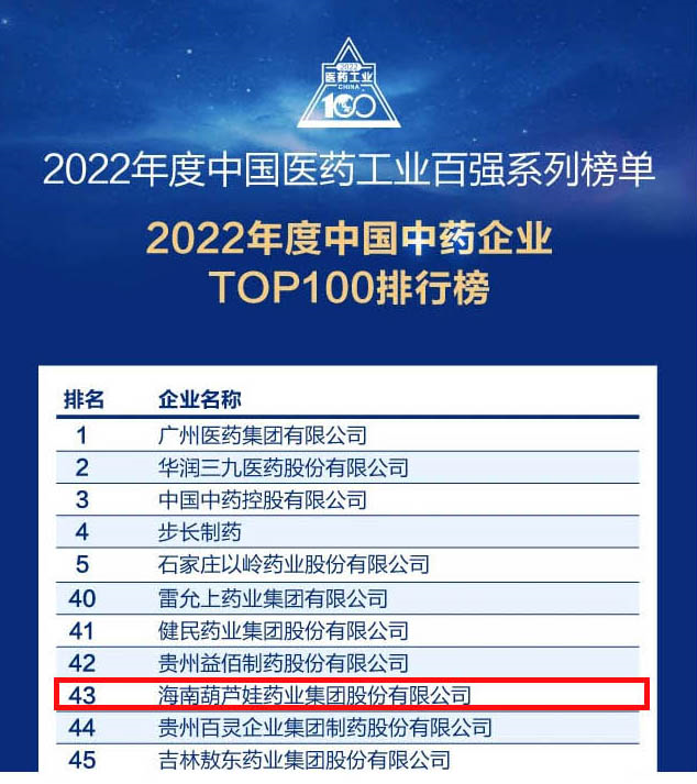 尊龙·Z6药业集团连续4年荣登“中国中药企业TOP100排行榜”,排名上升至第43位
